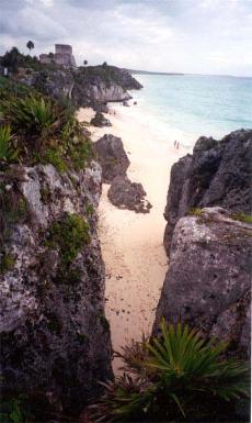 | SIN LUGAR A DUDAS DESPUES DE UNA LARGA EXCURSION POR LAS RUINAS ARQUEOLOGICAS DAN GANAS DE DISFRUTAR UN POCO EL MAR. Y AQUI TIENEN LA OPCION DE HACERLO EN LA MAGNIFICA PLAYA DE TULUM SIN OTROS PROGRAMAS PARA EL DIA. EL ACCESO A LA PLAYA ES DIRECTAMENTE DEL INTERIOR DE LA ZONA ARQUEOLOGICA, CAMINANDO A LA IZQUIERDA SE TIENE EL MAR Y SE LLEGA A LA FAMOSA PLAYA PARAISO. |